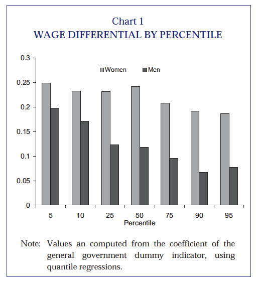 Há um estudo de 2009, também do banco de portugal, que chega à conclusão de que o prémio salarial total, para funções equivalentes, seria de 15% e o prémio horário seria de 25%. Nesse estudo também chegaram à conclusão que o prémio tenderia a desaparecer à medida que as remunerações subiam.
