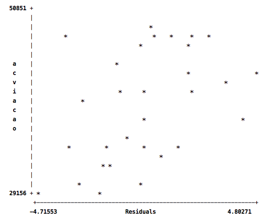 relação entre número de acidentes de viação e indicador de conjuntura (1980-2010): positiva, depois de descontada a tendência geral de aumento do número de acidentes de viação (embora muito ténue e praticamente estável em sentido estatístico).