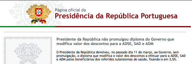 O Presidente da República não promulgou o aumento da contribuição para a ADSE, sendo que o diploma legal continha também uma transferência a titulo de consumo de medicamento que foi igualmente vista com olhos negativos (ler aqui).