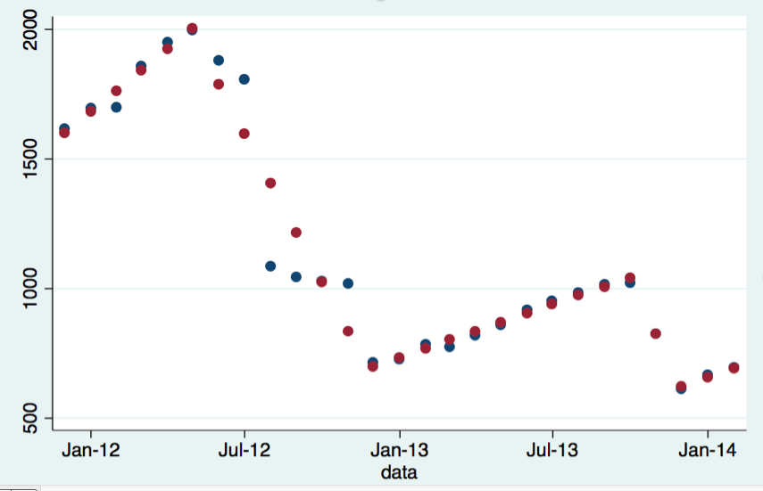 Estatisticamente a tendência fora dos momentos de regularização dos últimos dois anos tem sido sempre a mesma. Ainda assim, mesmo que a hipótese de igualdade de tendência sobreviva, em termos de dinâmica parece fazer sentido contemplar um ritmo antes de 2013 e outro depois.