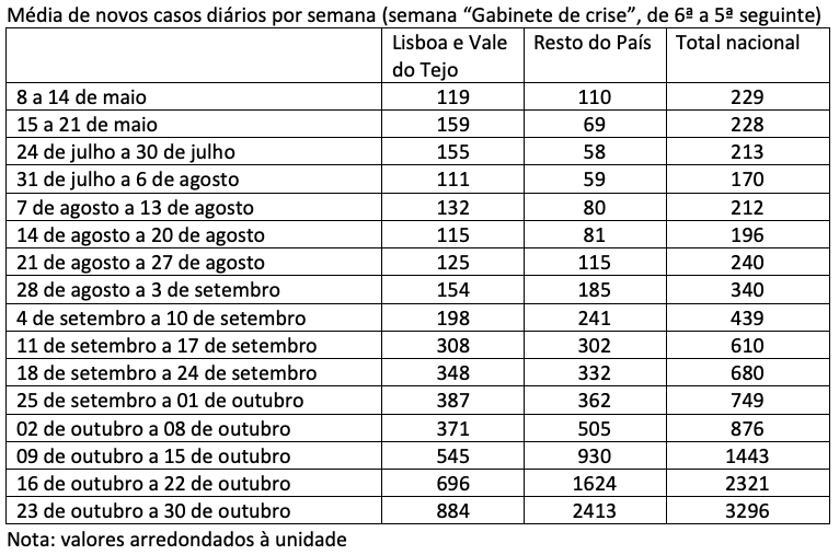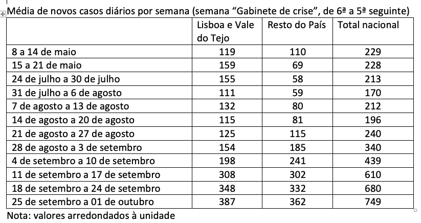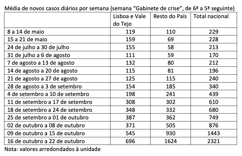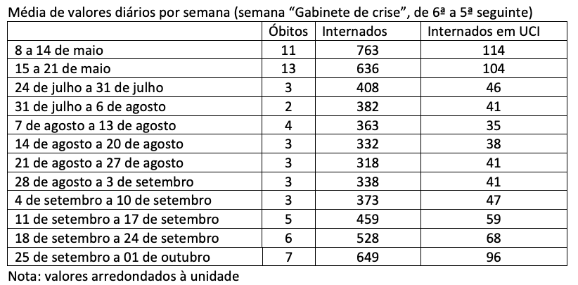 Por hábito, reporto abaixo os valores médios habituais de 5ª a 5ª, embora a evolução dentro da semana passada tenha sido suficientemente acentuada para o final da semana ser muito diferente do início da semana, qualquer que seja o indicador, todos eles apontando para agravamento.