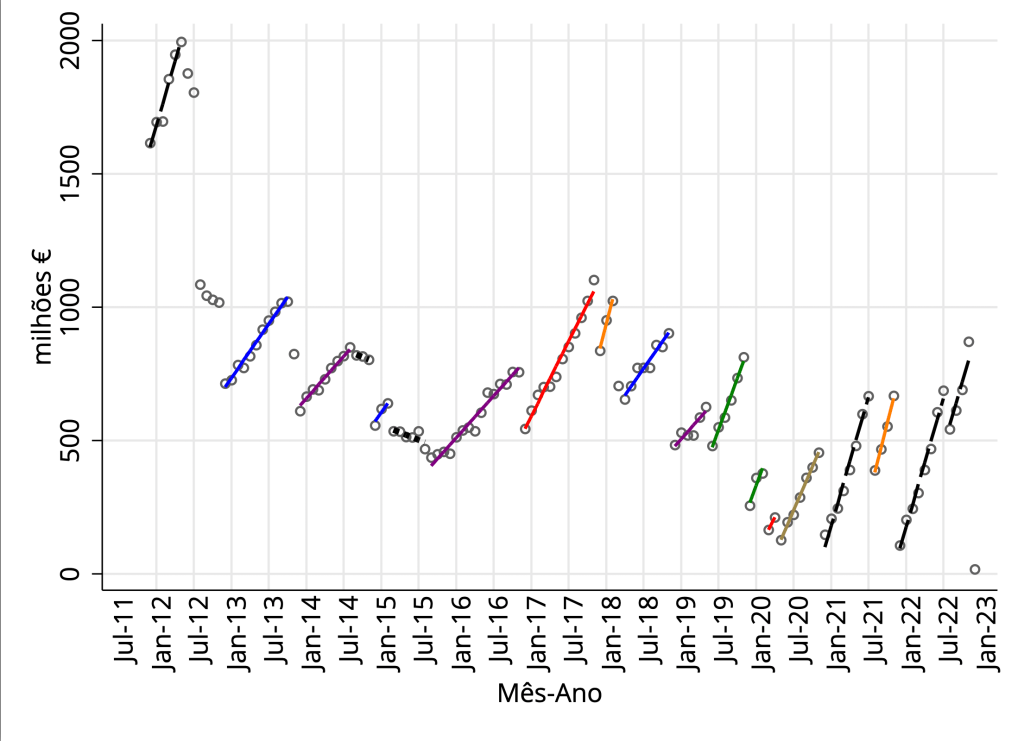 Assim, a possibilidade de “uma nova esperança” que se cria com o valor de final de ano de 2022, é temperada pelo risco de se voltar à dinâmica intra-anual a exigir repetido esforço financeiro extraordinário do orçamento do estado. Esse ritmo de crescimento intra-anual é comum as equipas do ministério da saúde desde o Verão de 2015.