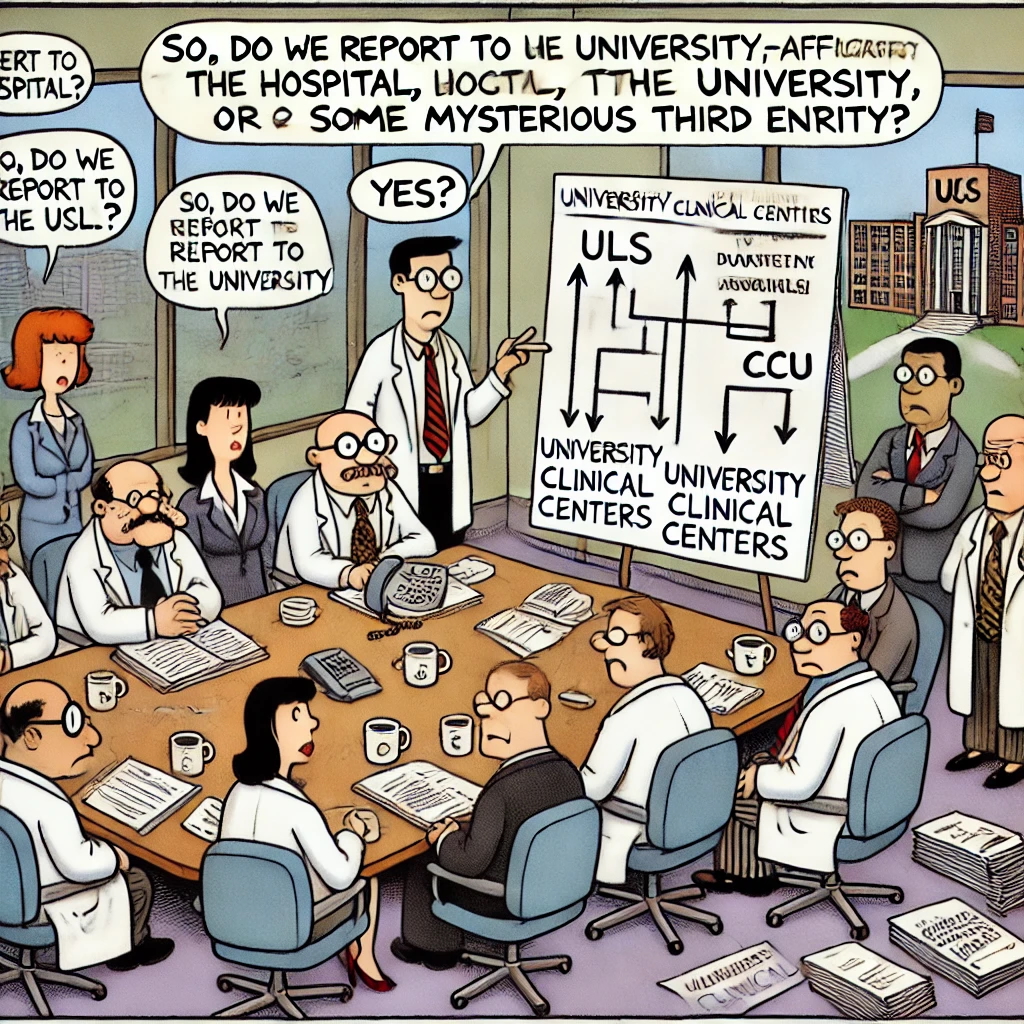 É explicitado que o “vogal executivo indicado pela Escola ou Faculdade de Medicina assumirá o pelouro das atividades pedagógicas, cientificas e de inovação no âmbito do Centro Clínico Universitário”. Tal garante ao braco universitário a condução desse aspecto. Embora não fosse um detalhe que me ocorresse, é uma boa solução para o objectivo pretendido.