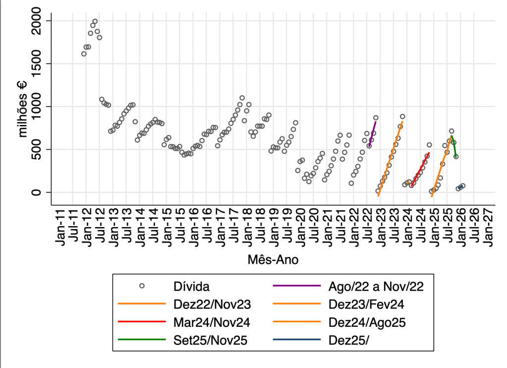 Há cerca de duas semanas foram divulgados o habitual valor dos pagamentos em atraso, referente ao mês de fevereiro. Depois do esforço de injeção de verbas adicionais que teve lugar em novembro de 2025, o ritmo de crescimento no início de ano poderá (?) finalmente (?) ser uma mudança de regime. Pelo menos, está a ser diferente do que se passou há um ano, embora similar ao arranque do ano de 2024. O que vemos no início de 2026 é, em parte, semelhante ao arranque de 2024: um aparente controlo que pode não ser estrutural. Poderá haver, contudo, outras decisões que tragam uma mudança estrutural.