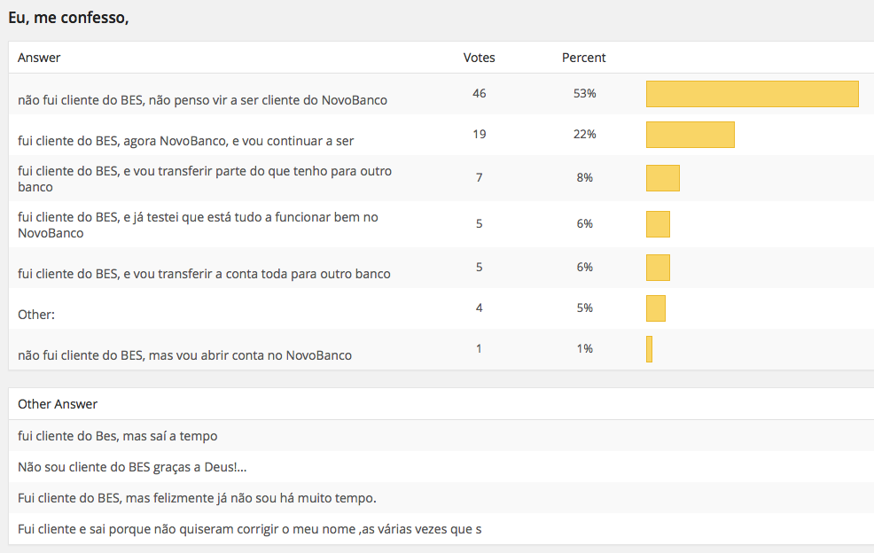 f) com esta solução evitou-se uma “corrida” ao BES, mas conseguiu-se mesmo devolver a confiança aos clientes? da resposta a esta pergunta dependerá o valor do que vier a seguir – se a confiança estiver perdida, a venda e integração noutra entidade bancária será a solução que resta, e mais vale adoptá-la rapidamente do que ter o estado a colocar dinheiro sucessivamente para no final ser essa de qualquer modo a solução.